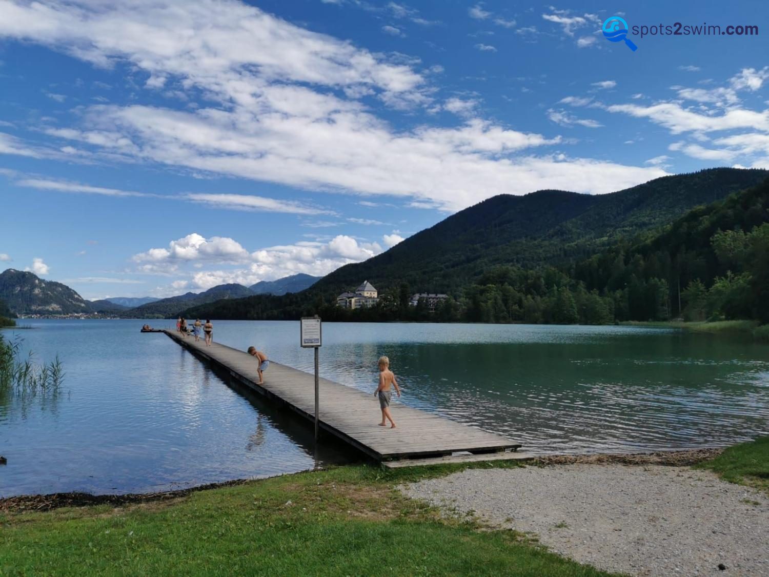 A really clear lake surrounded by lots of mountains. There is a large dock where you can jump off the side with stairs to climb back up. Entry is 3 euro’s but its worth it. Would recommend if your nearby!