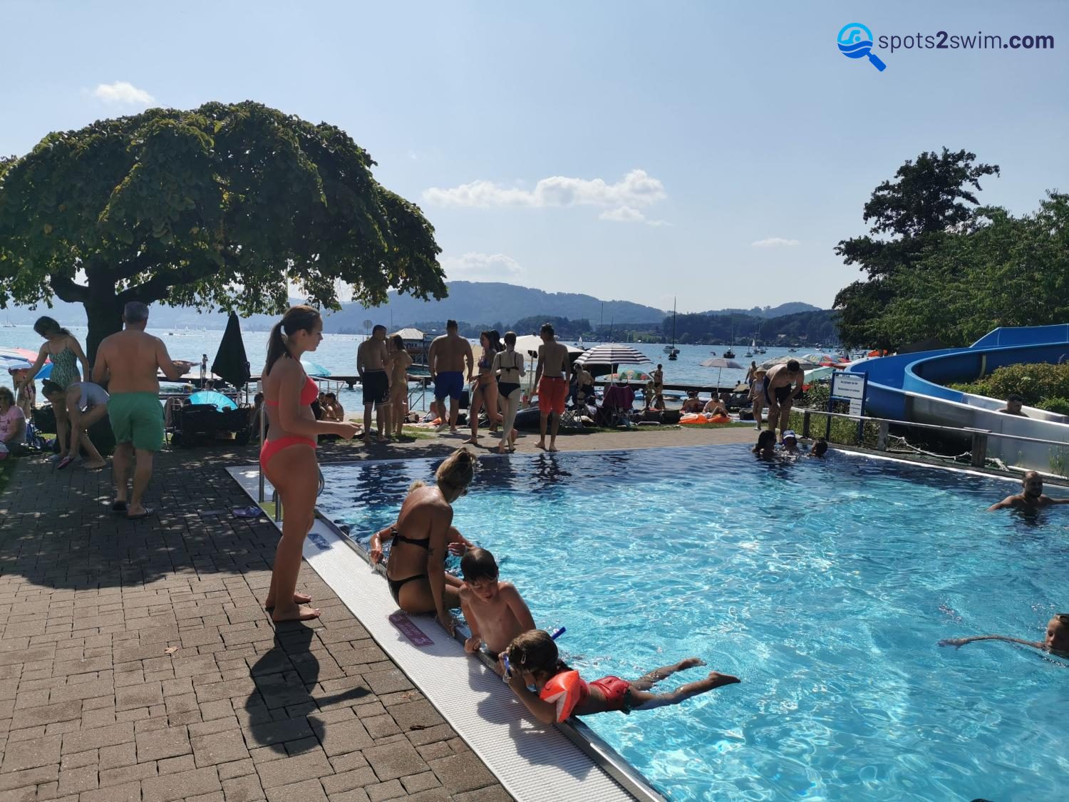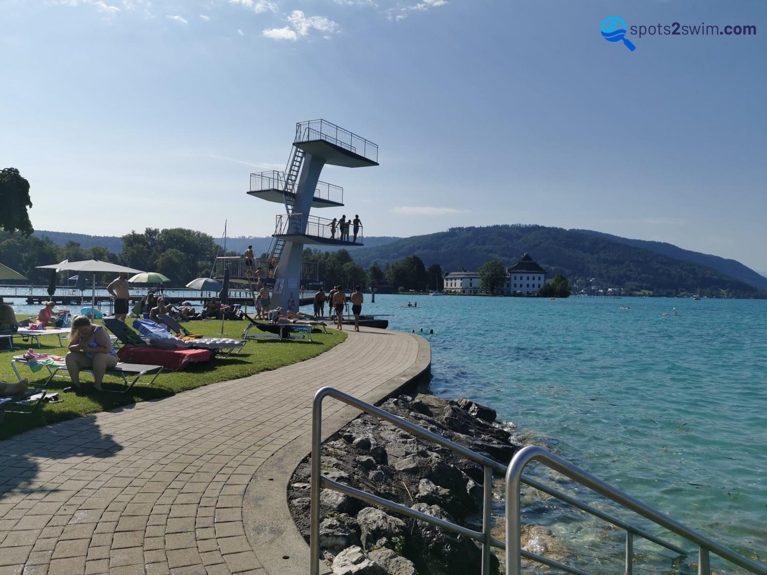 Paid option for swimming in the Attersee, can be very busy in summer, but nice location with high jumping tower and also a swimming pool.